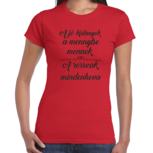 A jó kislányok a mennybe mennek, a rosszak mindenhova feliratos női póló