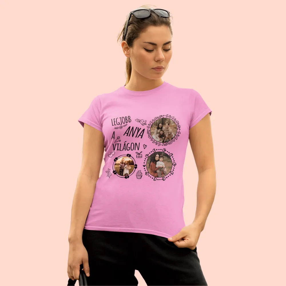 A póló több színben is elérhető, így könnyebb olyan változatot választani, amely illik az ajándékozott stílusához. A design középpontjában a „Legjobb Anya” üzenet áll, amit a saját fotók még különlegesebbé tesznek. Családi képek, gyerekekről készült fotók vagy közös pillanatok is rákerülhetnek, így minden darab teljesen egyedi lesz.