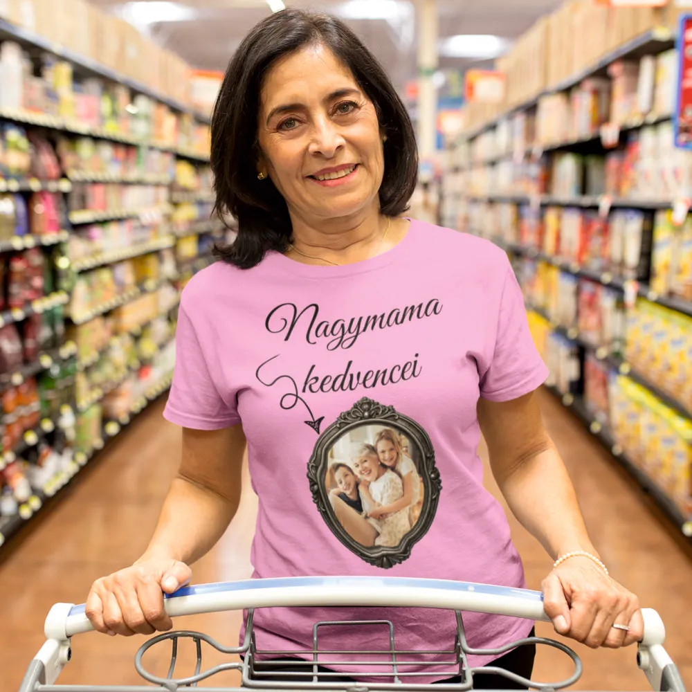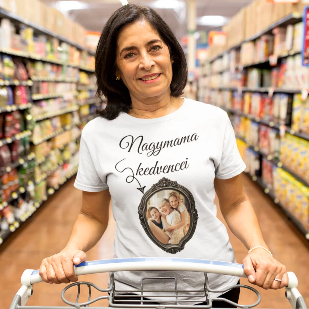 A Nagymama kedvencei egyedi fényképes női póló azoknak készült, akik egyedi módon szeretnék kifejezni a szeretetüket. Ha olyan ajándékot keresel, amely valóban emlékezetes marad, ezzel a személyre szabható pólóval nehéz mellélőni.