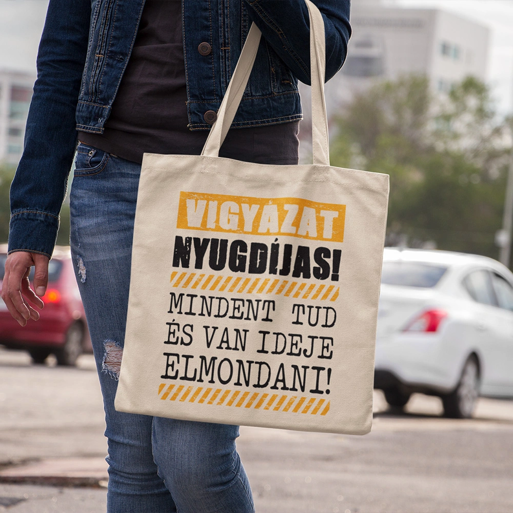 Vászontáska Vigyázat nyugdíjas