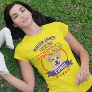 Női póló Minden ember egyenlőnek születik de csak a legjobbak lesznek corgi gazdik